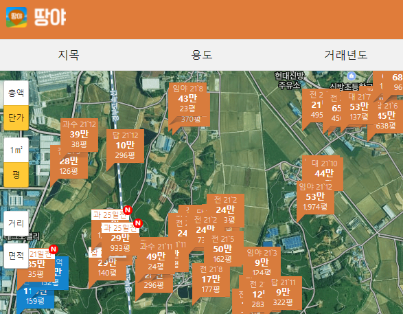 토지 시세를 확인할 때는 밸류맵도 확인해보시고 땅야 두 가지를 같이 이용하는 것을 추천해 드립니다. 내가 살려고 하는 땅과 지역이 같고, 도로 현황이 같고 용도지역이 같고 거래 연도가 최근인 경우를 조회해서 토지 실거래가 조회하시면 됩니다.